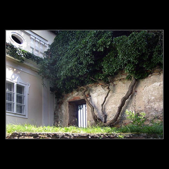 <hr> jinak by mi přišlo zajímavější vyfotit jen tu pravou zeď se stromem...