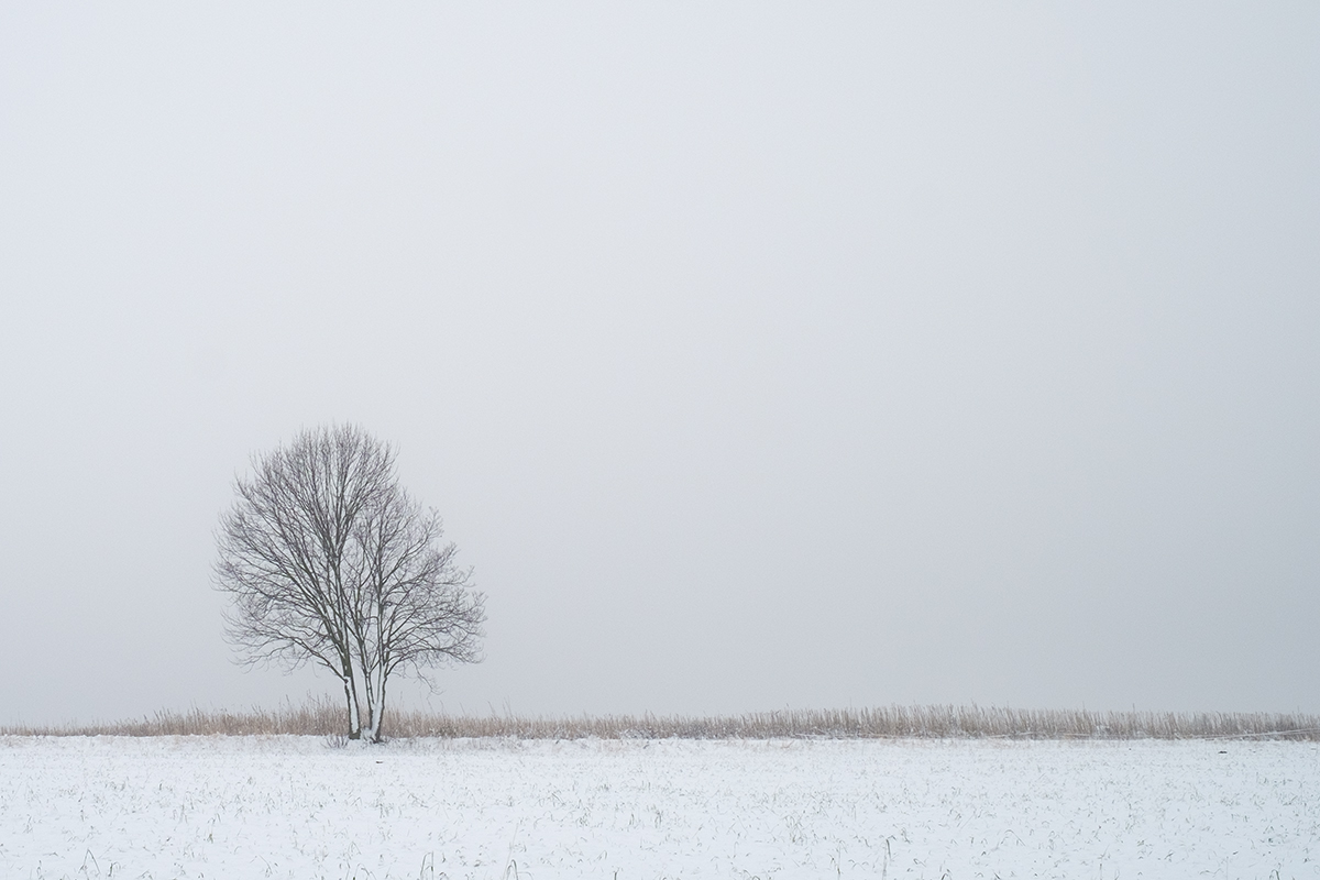Ten nafoukaný sníh na kmenech to tahá hodně nad průměr a high key (nebo co je) tomu sluší, ale stejně to vidím jako prvotřídní nahrávku na černobílou. :)