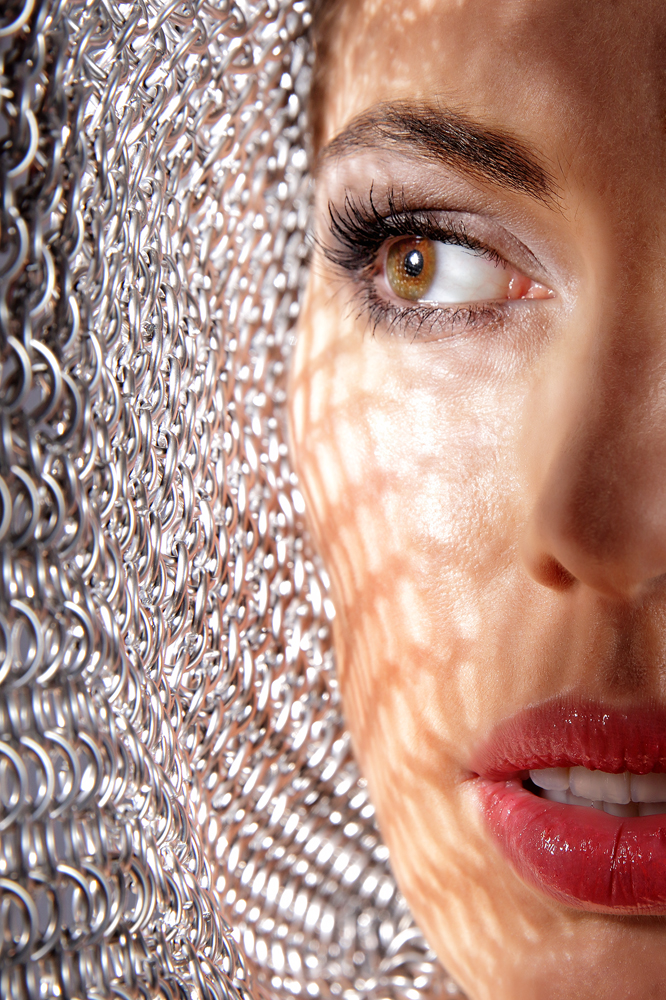 Myslím Jiří, že to chtělo měkčí, rozptýlenější světlo, které je tady dost tvrdé. Takto kontrastní podání způsobuje opticky (stíny síťky) deformaci tváře. Pleť pod okem a nosem (knírek) taky moc hezky nepůsobí. Rty jsou takové nějaké rozbabrané. Oko moc hezké. Ale jak jsem psal, zaujalo a považuji to za platný pokus.