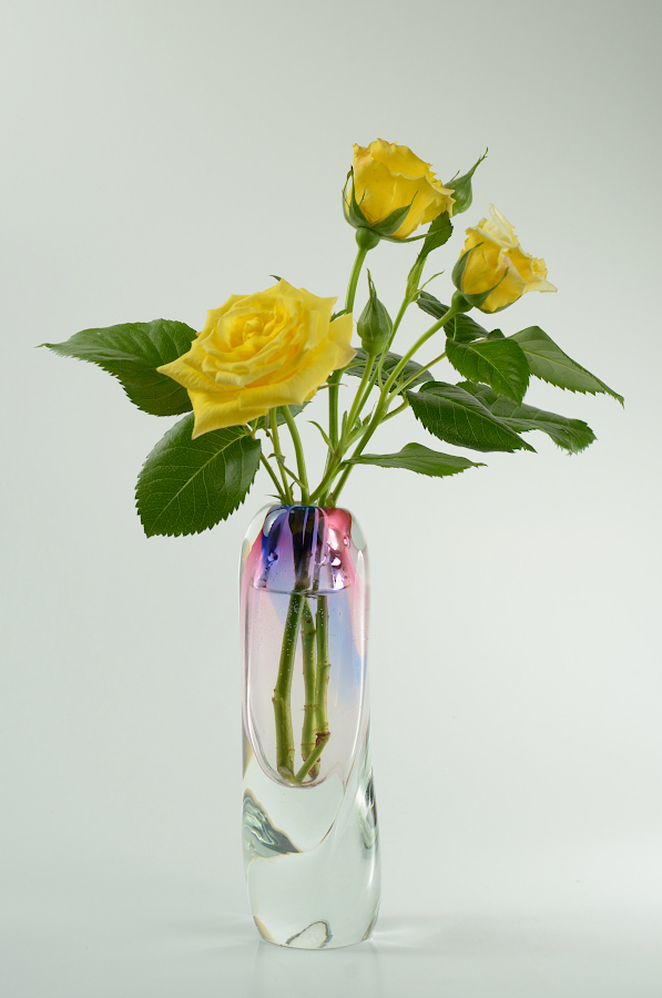 barevně neladí váza s růžemi