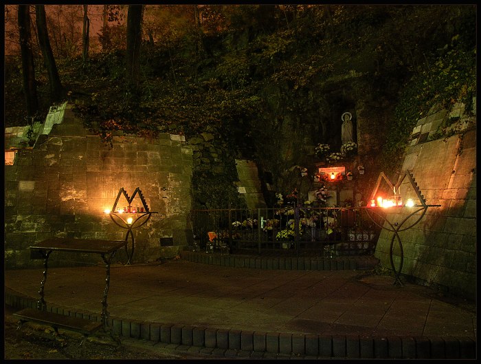 BH: je to na bratislavskej Kalvárii, za kostolom, pred sto rokmi tu bol malý kameňolom, potom, začiatkom 20. storočia tu urobili miesto zasvätené Panne Márii. Po bokoch je celé lemované ďakovnými tabuľkami, najstaršie sú datované zo začiatku minulého storočia. Miesto má hlavne večer zaujímavú a mystickú atmosféru... :-)