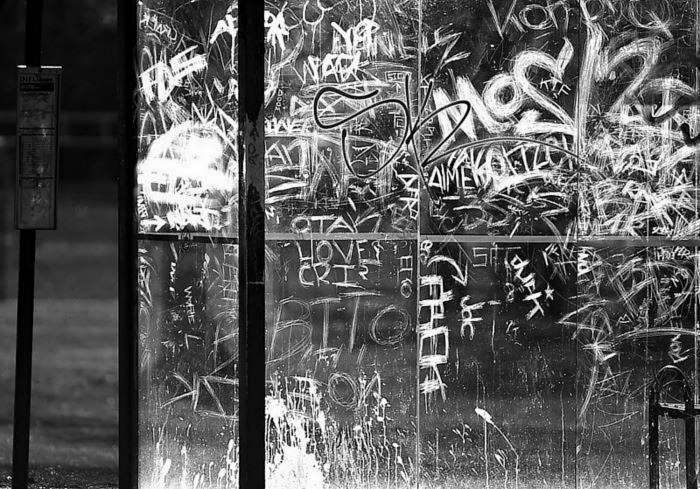 vzpomněl jsem na tu písničku Poutníků: „Napsal jsem jméno svý na zdi..."