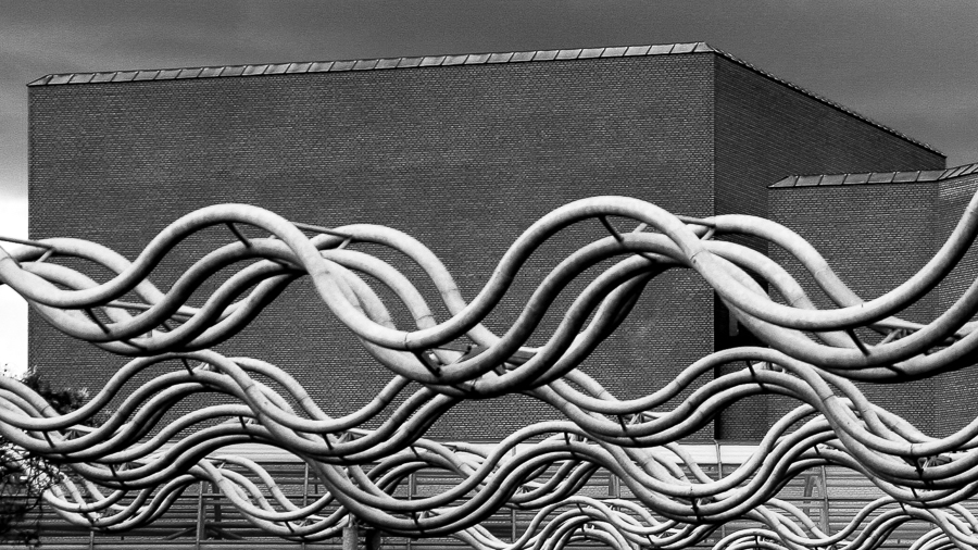 Rozhodně ne-nezajímavé. Jenom bych se zbavil levého kraje aby kraj budovy nebyl vidět stejně jako ten napravo. Vytviřilo by to tři (čtyři) pásové motivy. Ten kontrast vlnovek a geometrie se mi jinak dost líbí.