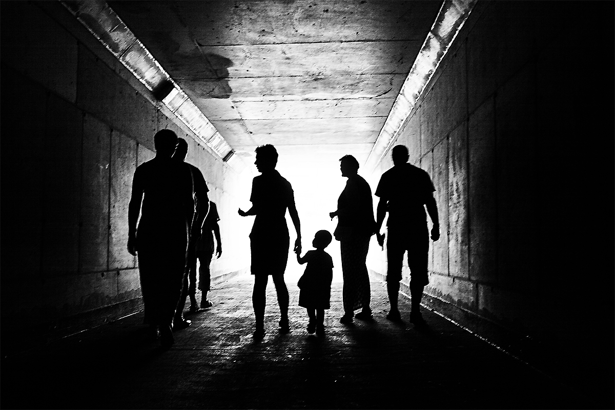 Ty tři siluety mě nevadí - jsou pěkně obrysově oddělené, je tam jakýsi rytmus a střední postava s nimi vede rozhovor. :) Pěkná fotka.