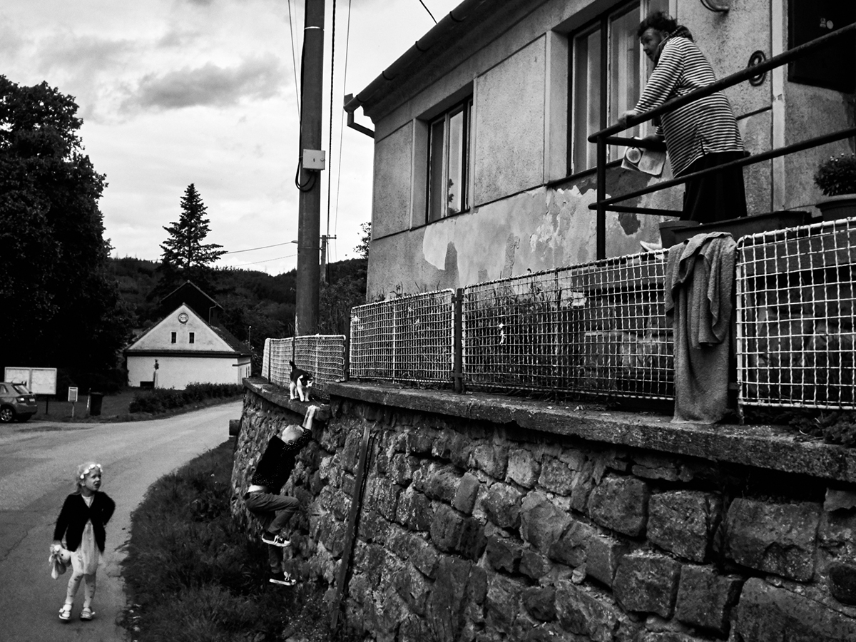 Já vidím tři nezávislé akce. Sousedky, kluk na zídce a kočka. Jako momenta se mi to zdá být fajn!