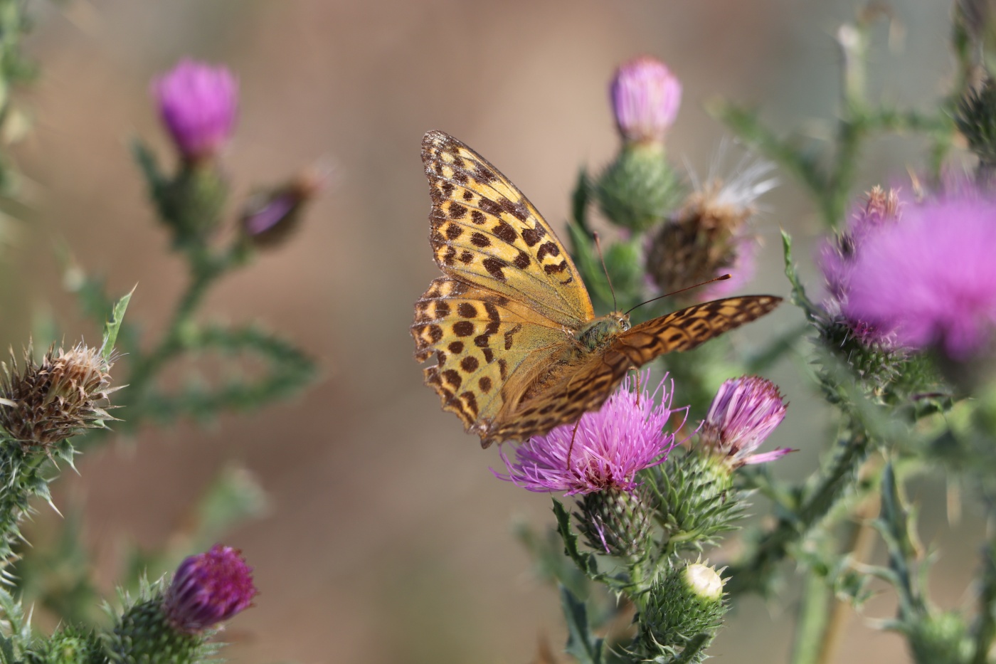 Moc bodláku, málo motýla, řekl bych. Zkus to trochu říznout, možná na čtverec... I když ten pravý květ dost ruší.