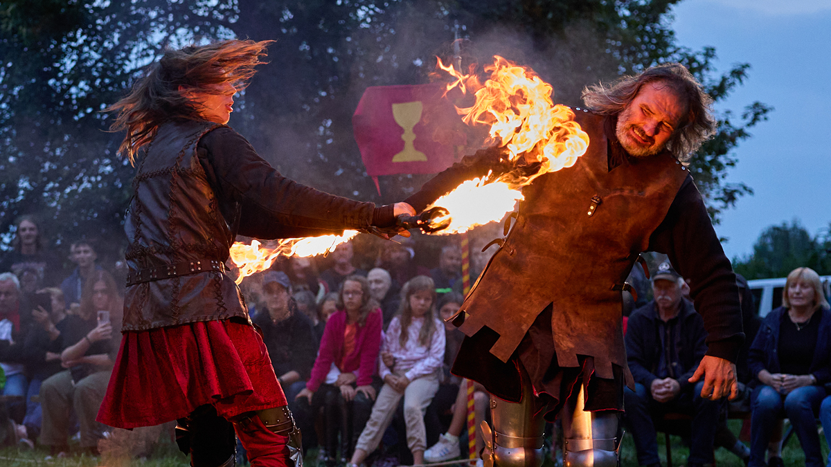 Balet (souboj) s loučemi - povedené. I světlo vyšlo, jako ve filmu!