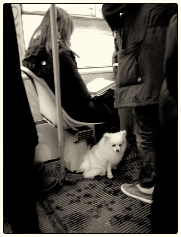 rozmazaný bílý pes v tramvaji