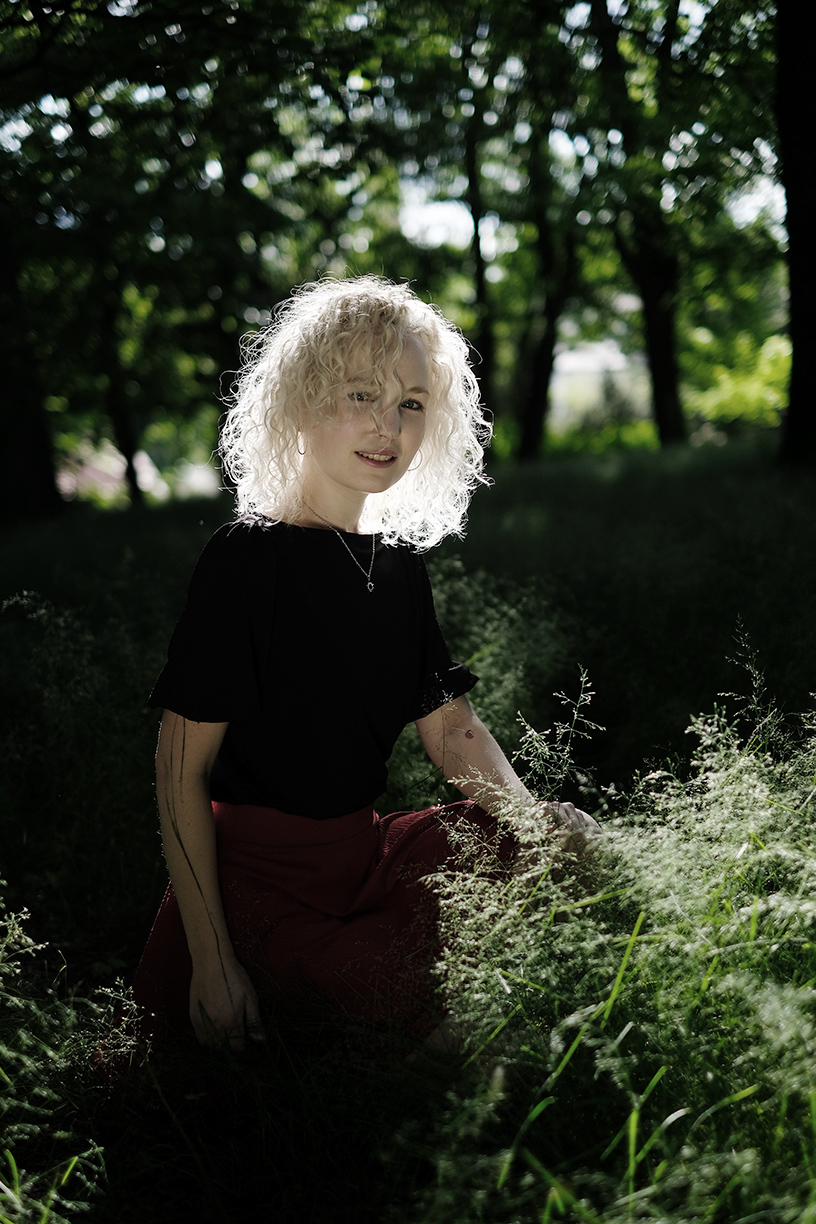 Napadl mne čtverec, kde modelka by vyplňovala pouze dolní levý roh.